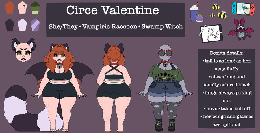 Hi I’m Witchsteria! I also go by witchy/witch, Steria, and Circe so you can call me any of those. My pronouns are She/They and I’m currently 23 years old, my birthday is on March 22nd. I’m a digital artist that’s still learning and would one day like to start streaming as a vtuber. I love sour candy as well as the color purple and absolutely love coffee.